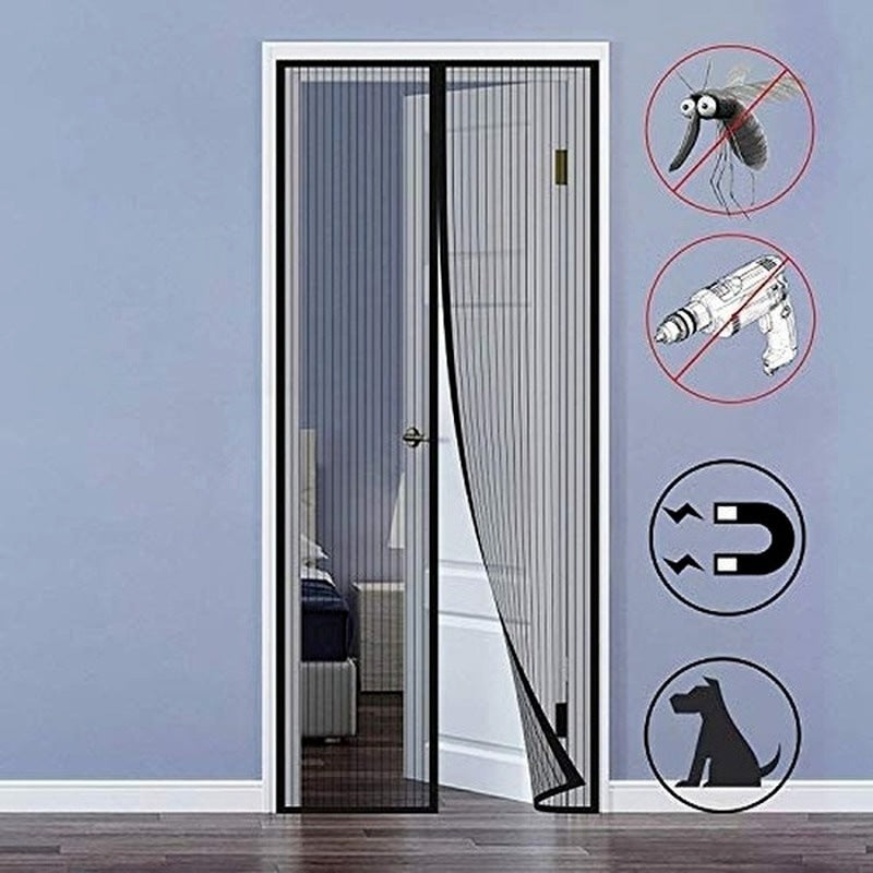 ✔️Berührungslose Fliegengittertür ✔️Lässt frische Luft herein, hält aber Insekten fern ✔️Magnetischer, freihändiger Ein- & Ausstieg für Menschen & Haustiere ✔️Lässt sich in wenigen Minuten ohne Werkzeug installieren ✔️Lässt sich zur einfachen Aufbewahrung zusammenklappen